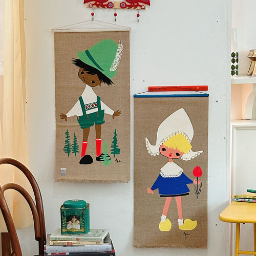 - Vintage> 70s mini linen wall hanging