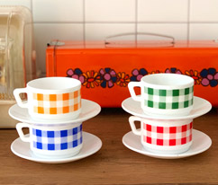 - [콜렉션] 70s Arcopal France check coffee set 블루